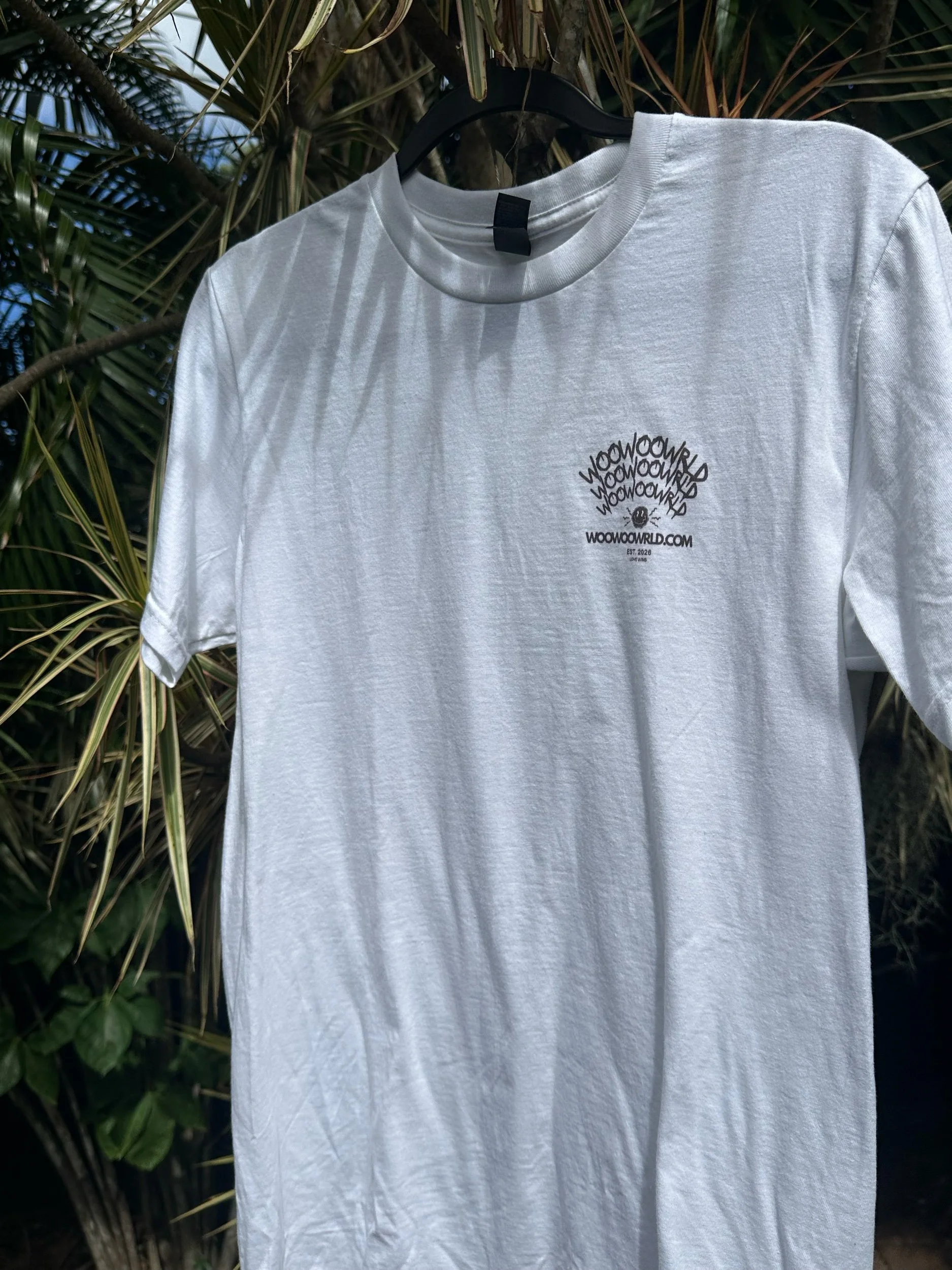 The first T-shirts for WOOWOOWRLD! This design won’t be repeated again. Very minimal stock. Printed on Gildan blanks.
